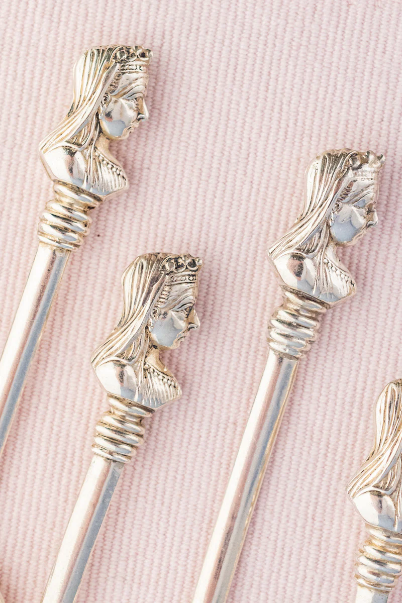 With great care, these regal spoons have been lovingly preserved, making an appearance at only the most special occasions for more than a century. A joy to use and a sparkling conversation piece to be sure, this charming set captures the spirit of the grand Victorian age, promising to infuse your collection with its illustrious provenance.