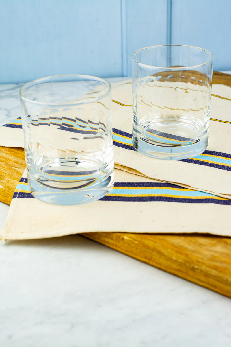 Imported from England, these elegant whiskey glasses are precisely engraved with a band of distinctive oval dots, then brilliantly polished. With a pleasing weight and a confident hand-feel, these English Rocks Glasses are decidedly handsome and are sure to become a beloved addition to your barware collection. Cheers!