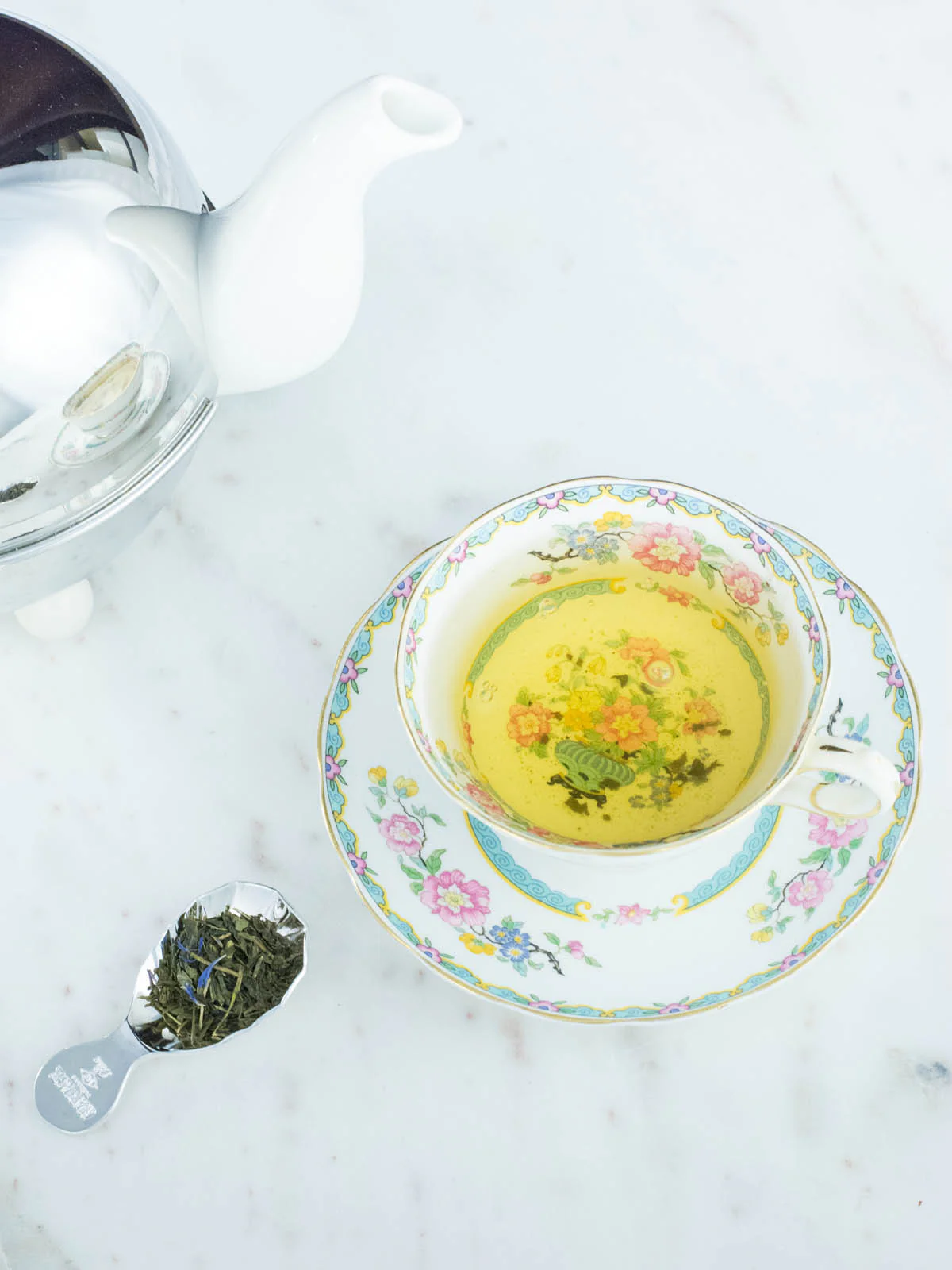 Flower Moon: A sensual oolong tea scented with pearly almond and blended with delicate spices that brews a lovely hue of blue.