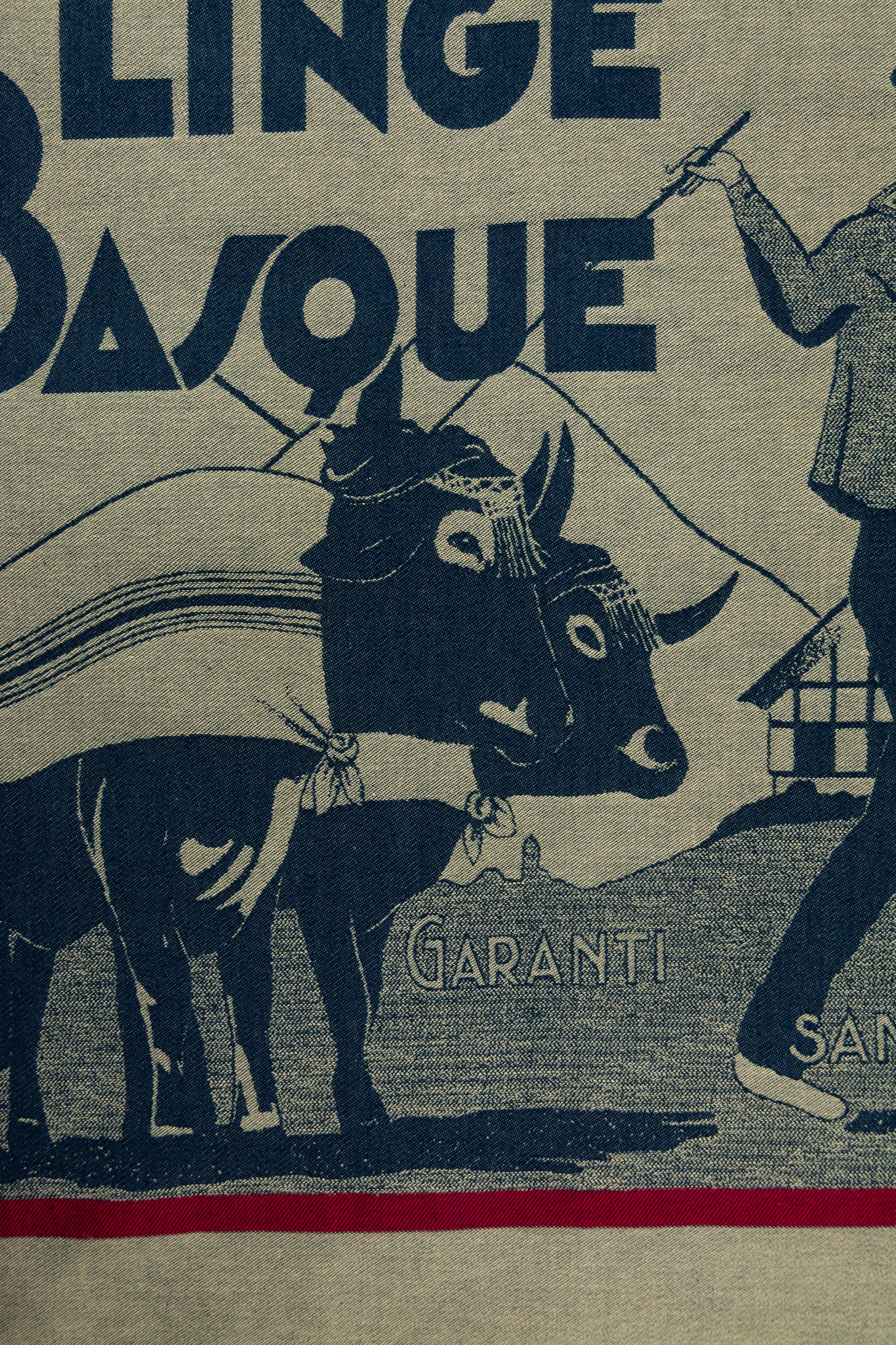 Using the graphic from a Moutet advertisement from 1919, we are pleased to offer this Linge Basque Tea Towel. A wonderful example of the rich heritage of our favorite French weavers, this tea towel features a first generation Moutet as he leads his oxen, blanketed in original Moutet linens woven in Basque tradition, as they move through the mountainous countryside.